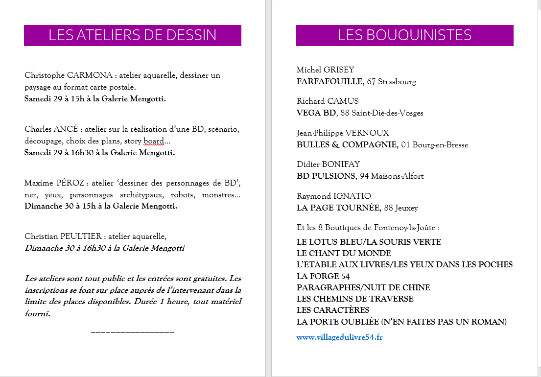 - En plus des onze boutiques sédentaires, plusieurs exposants professionnels du Grand-Est spécialisés dans la BD.